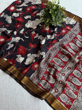 Make a bold statement with this Kalamkari printed Bangalore silk dupatta, where tradition meets fearless style. Crafted from rich Bangalore silk, it features striking hand-drawn Kalamkari patterns that command attention and celebrate artistic rebellion. The vibrant colors and intricate designs explode with energy, transforming any outfit into a masterpiece of daring elegance. Lightweight yet luxuriously smooth, this dupatta drapes effortlessly, adding a fearless pop of culture and sophistication to your look. Stand out from the crowd and redefine classic fashion with this unapologetically bold accessory.