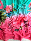 Digital floral shaded pure chiffon saree
