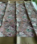 Elevate your wardrobe with this vintage floral printed viscose saree featuring a shimmering zari border. Complete with a matching blouse piece, this saree offers a seamless blend of traditional elegance and modern comfort. Its soft, breathable fabric ensures all-day ease, while the intricate floral design and lustrous border make you stand out effortlessly at any occasion. Don’t miss the chance to own a timeless piece that complements your graceful style perfectly.