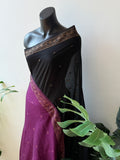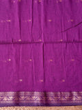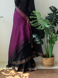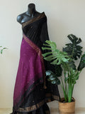 Add timeless elegance to your wardrobe with this beautiful Black with magenta dual-tone cotton saree, designed for effortless grace and comfort. The saree features a black body highlighted with delicate zari buttas, paired with a stunning magenta contrast pallu that enhances its traditional appeal.