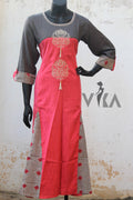 Embroidered cotton linen kurti comes with 3/4 th sleeve