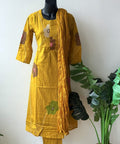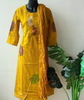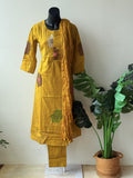 A line Round Neck all embroidery work 3/4th sleeve cotton top comes with attached inner lining, elastic waist, Draw string pure cotton pant comes with pure crush cotton dupatta