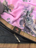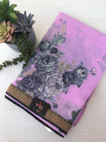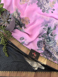 Pink Floral printed georgette saree with attached border and printed blouse pc as shown