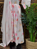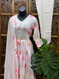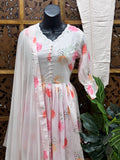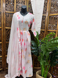 soft cotton fabric Neck embroidery padded Floral printed, side zipper ready maxi gown, comes with plain chiffon dupatta