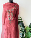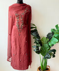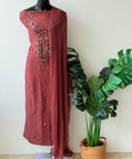 French knot Hand embroidered Russian silk top, plain santoon bottom comes with net dupatta