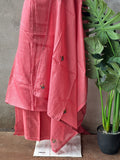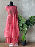 French knot hand embroidery work kota silk top, plain cotton bottom comes with embroidered kota silk dupatta