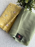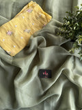 Dress to impress with our green shimmer chiffon saree! This elegant saree features delicate embroidery on a chanderi blouse. Perfect for any occasion, this saree will add a touch of shimmer to your look. Get ready to turn heads and feel confident in our stunning saree!