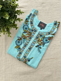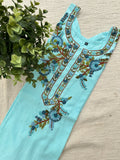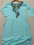 Indulge yourself in this exquisite Rayon kurti, featuring pure hand embroidery and a flattering straight fit silhouette. With its 3/4th sleeves, it's sure to be the perfect addition to your wardrobe, adding a stylish and effortless charm!