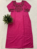 Indulge yourself in this exquisite pure handloom Vikhadi cotton kurti, featuring hand embroidery and a flattering straight fit silhouette. With its 3/4th sleeves, it's sure to be the perfect addition to your wardrobe, adding a stylish and effortless charm!