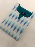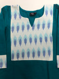 Ikat patch neck, 3/4th sleeves mercerized premium cotton kurti