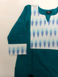 Ikat patch plain cotton kurti - Green stripes