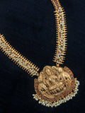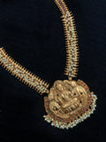 Beautiful Premium quality gold look imitation bead work ruby green stone with, Lakshmi pendant Haram comes woth lakshmi jhumka