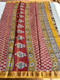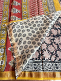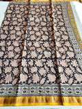 Hand Block Printed Pure Chanderi saree comes with golden zari maheswari border with printed pallu and running blouse pc