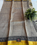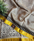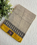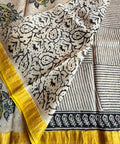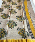 Hand Block Printed Pure Chanderi saree comes with golden zari maheswari border with printed pallu and running blouse pc