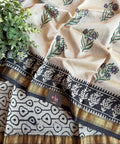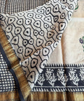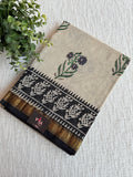 Hand Block Printed Pure Chanderi saree comes with golden zari maheswari border with printed pallu and running blouse pc