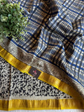 Hand Block Printed Pure Chanderi saree comes with golden zari maheswari border with printed pallu and running blouse pc