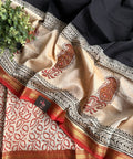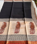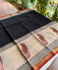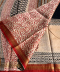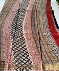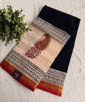 Pure Chanderi saree comes with golden zari maheswari border with printed pallu and running blouse pc