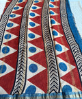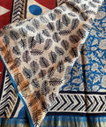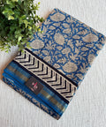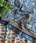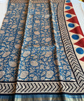 Hand Block Printed Pure Chanderi saree comes with golden zari maheswari border with printed pallu and running blouse pc