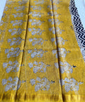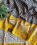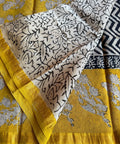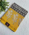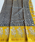 Hand Block Printed Pure Chanderi saree comes with golden zari maheswari border with printed pallu and running blouse pc