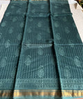 Pure Chanderi saree comes with golden zari maheswari border with printed pallu and running blouse pc
