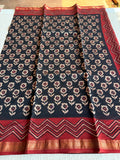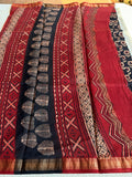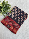 Hand Block Printed Pure Chanderi saree comes with golden zari maheswari border with printed pallu and running blouse pc