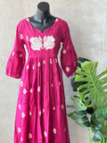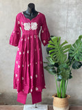 Neck floral embrodiery, 3/4th sleeves printed pure cotton kurti with elastic waist with side pocket pure cotton pant