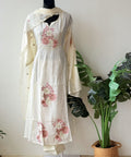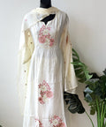 Neck emb modal chanderi silk top, elastic waist santoon pant comes with muslin dupatta