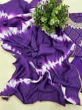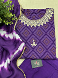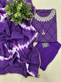 Neck embroidery printed muslin kurti, plain muslin pant comes with tie and dye printed muslin dupatta