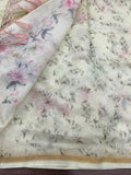 Off white Floral Printed pure munga silk saree