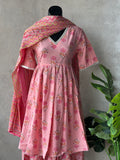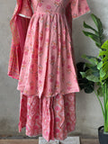 Pink printed cotton sharara set