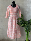 Pintuck Neck work 3/4th sleeves , printed viscose cotton kurti with attached lining