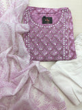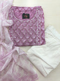 Neck embroidery printed cotton top, elastic waist pant, printed kota cotton dupatta