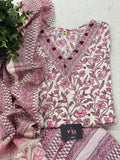 V neck printed cotton top, printed cotton harem pant, printed cotton dupatta