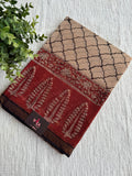 This hand block printed kota cotton saree is made from pure cotton, making it lightweight and comfortable to wear. The traditional printing technique adds a unique touch to each piece, making it a one-of-a-kind addition to your wardrobe.