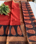 This hand block printed kota cotton saree is made from pure cotton, making it lightweight and comfortable to wear. The traditional printing technique adds a unique touch to each piece, making it a one-of-a-kind addition to your wardrobe.