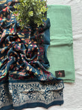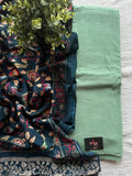 plain slub cotton top and bottom comes with kalamkari printed modal silk dupatta