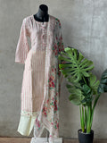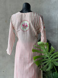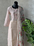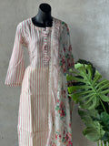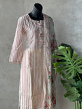 Striped printed muslin silk kurti, elastic waist plain santoon bottom comes with printed taby silk dupatta with attached border