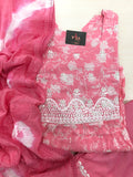Floral printed muslin top, 3/4 th sleeve, elastic waist pant comes with printed muslin dupatta