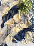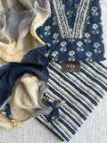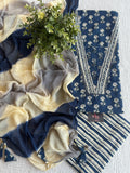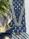 V neck printed cotton top, printed cotton bottom comes with shaded chiffon dupatta