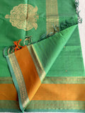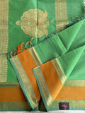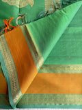 Expertly crafted from pure handloom silk cotton, this saree showcases a rich weaving pallu and comes with a matching blouse piece. Enjoy the luxurious feel of silk with the comfort of cotton, making this saree perfect for any occasion. Elevate your style and make a statement with this elegant saree.