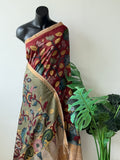 Red Pen kalamkari silk saree