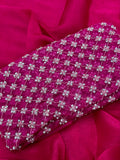 Embrace your inner goddess with this gorgeous Ruby pink marble chiffon Saree! The plain fabric and stone work embroidery blouse will have you feeling like royalty. Whether you’re a saree enthusiast or a saree novice, this is the perfect look to get you started! (And ready to impress!)