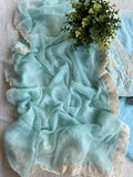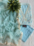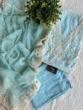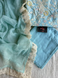 Premium quality V lace neck embroidery kota top, plain cotton bottom comes with chiffon dupatta with attached lace border