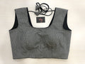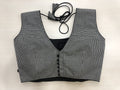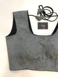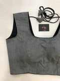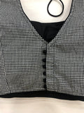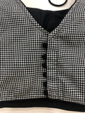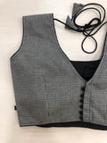 Small checked back open sleeveless blouse with black potli bottons at back