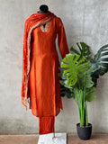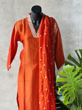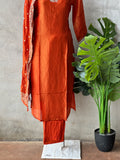 V neck partywear Tissue silk kurti, elastic wasit pant comes with banaras weaving tissue silk dupatta