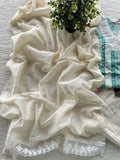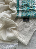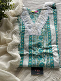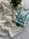 Angrakha Neck lace work printed modal silk kurti, printed elastic waist pant comes with plain chiffon dupatta