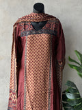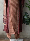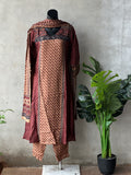 V Neck work 3/4th sleeves, printed pure viscose kurti with attached lining comes with elastic waist pant and soft muslin dupatta