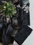 Black dola silk floral emb patch work top, elastic waise pant comes with floral printed silk cotton dupatta